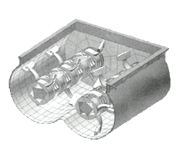 物料混合是指對一種或者多種的物料進(jìn)行均勻化作業(yè),進(jìn)而減小其粒度、密度、溫度及塑性等分布的不均勻性,是一種常見的物料處理方法。不同行業(yè),由于原料種類、特性、用途及后續(xù)處理方法不同,因而所選用的混合設(shè)備也各不相同。雙軸臥式葉片混合機(jī)采用間歇排料方式,其結(jié)構(gòu)采用兩根上面布置有攪拌葉片的攪拌軸,攪拌葉片在其旋轉(zhuǎn)過程中對物料進(jìn)行強(qiáng)制混合并使其均勻化。該設(shè)備非常適用于粉狀、顆粒狀及其和液體混合后的物料的混合和均化。
